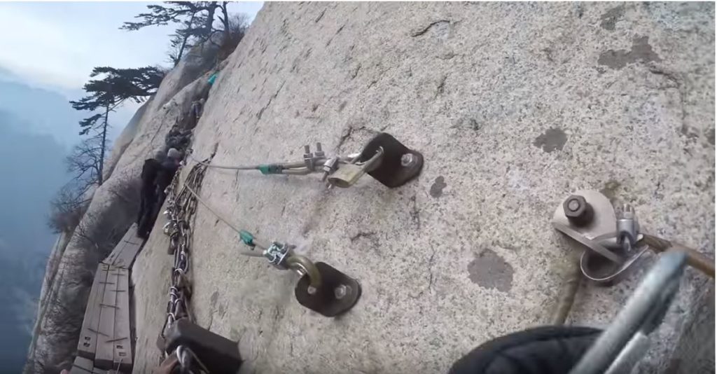 Climbing up Mount Huashan in China is an insane hike. It leaves you perilously hanging on the side of a sheer drop of thousands of meters.
