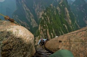 Climbing up Mount Huashan in China is an insane hike. It leaves you perilously hanging on the side of a sheer drop of thousands of meters.