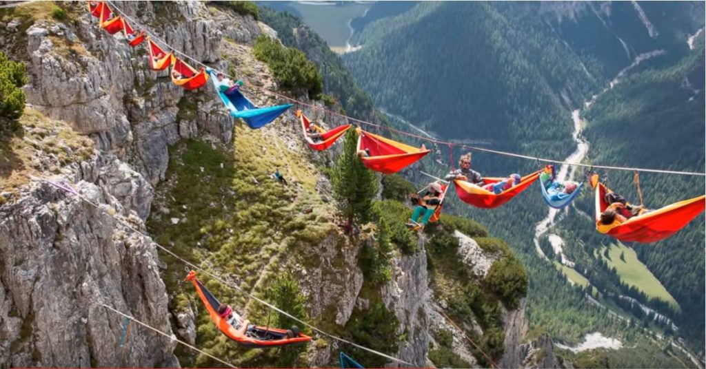 The world’s highest slackline festival offers the perfect juxtaposition of completely terrifying and the most relaxing experience imaginable. For the average person this would be insanely daunting. However these guys are used to being at great heights with nothing keeping them alive but their slackline.