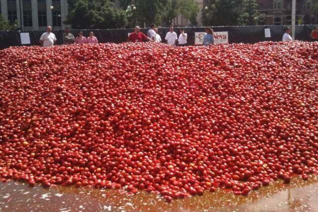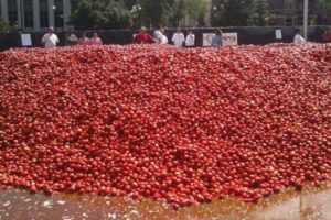 The day starts at 11am.  A mammoth truck holding over 100 metric tonnes of tomatoes arrives in Plaza Del Pueblo, the town center.  They mayhem is not allowed to start until two water cannons are fired.  Upon this sound, all hell breaks loose in the world’s most insane food fight.
